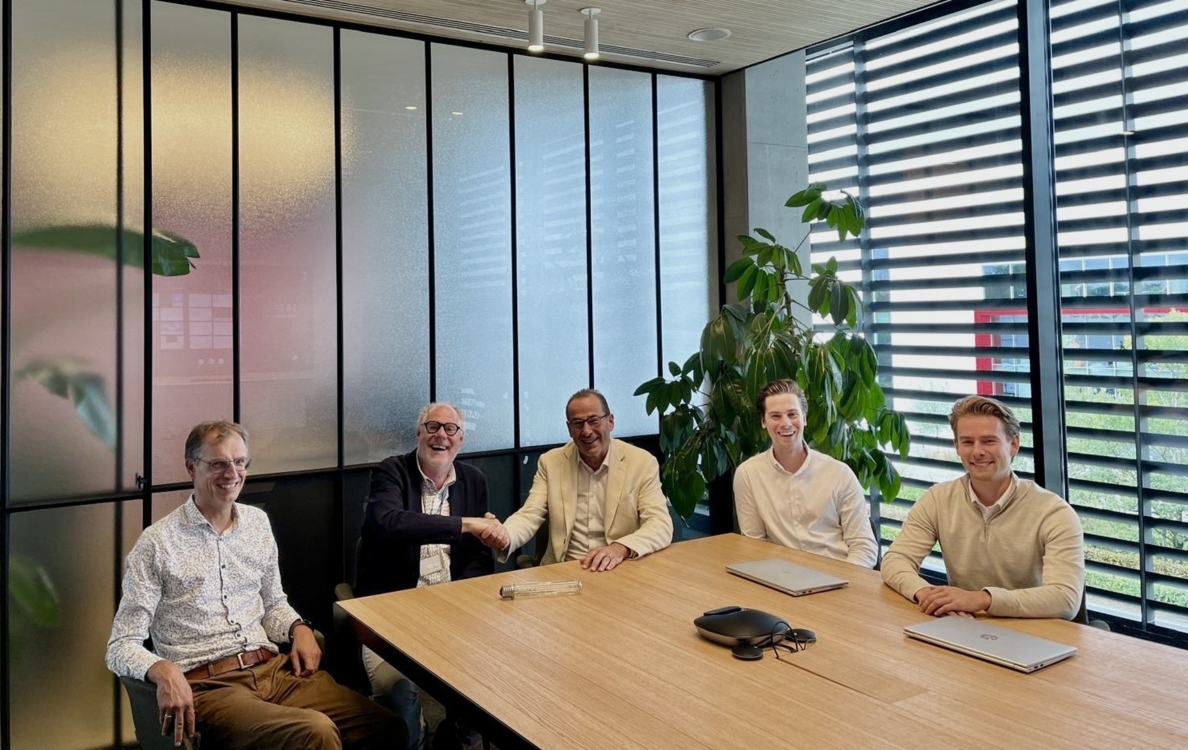 Foto: Van links naar rechts: Tom Van Den Branden (Maintenance & Facility Manger Signify) Ronald Reunis (Site & Plant Manager Signify), Geert Van Stappen (CEO Jeni), Jens Van Stappen (CFO Jeni), Niels Van Stappen (Operations manager Jeni)